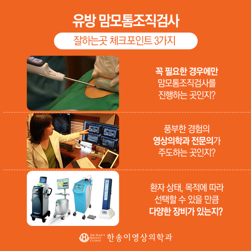 맘모톰은 작은 절개를 통해 치료하기 때문에 별도의 봉합이 필요 없어 흉터에 대한 걱정이 줄어들고 10~20분이면 부담이 줄어듭니다. 별도의 회복기간을 갖습니다.검사 후 빠른 회복을 위해 즉시 퇴원이 가능합니다.일상생활에 바쁜 직장인들도 언제든지 검사와 치료를 받을 수 있습니다.