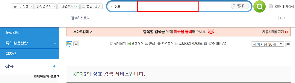 상표 < SEARCH – KIPRIS 특허 정보 검색 서비스 상표 보기 기본 보기 표현 보기 선택한 보기 Excel 인쇄 환경 설정 저장 KIPRIS의 상표 검색 서비스입니다. 1 확장 버튼을 누르면 긴 검색어를 자유롭게 입력/편집할 수 있습니다. 2 정확한 검색 결과를 원하신다면 스마트 검색, 결과 재검색, 효율적인 검색어 확장을 이용하세요. 3 정렬 기능을 사용하여 많은 검색 결과 중에서 다르게 필터링합니다. 4 특허 용어가 어려우면 도움말과 용어집을 참조하십시오. 5 검색식 저장, 내 폴더 기능, 온라인 다운로드는 KIPRIS 회원에게 제공되는 서비스입니다. 6 더 다양한 기능을 사용해 보세요... kdtj.kipris.or.kr 홈페이지