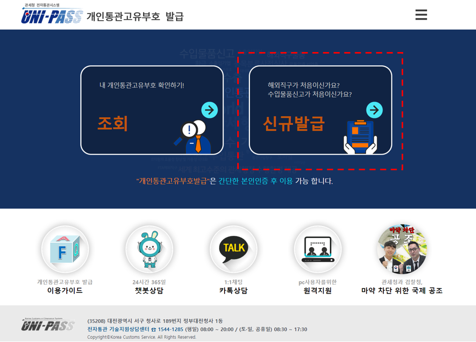 1. 아래 이미지를 클릭하시면 개인통관고유코드 발급사이트로 이동합니다.