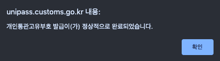 2-3. 다음 화면으로 넘어가면 개인 통관번호가 발급됩니다.